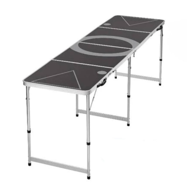 De bierpongtafel is gemaakt van stevig aluminium, eenvoudig in- en uit te klappen en voorzien van een glad oppervlak dat gemakkelijk schoon te maken is. Dankzij het compacte formaat is de tafel snel op te zetten en makkelijk te vervoeren – ideaal voor studentenfeesten, verjaardagen en bedrijfsborrels.