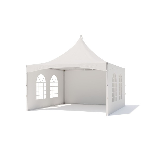 De karakteristieke puntvorm geeft deze pagodetent een elegante en professionele uitstraling. Hierdoor is de tent perfect voor onder andere bruiloften, bedrijfsfeesten, beurzen en tuinfeesten. De witte kleur zorgt voor een frisse en nette look die bij vrijwel elk evenement past.